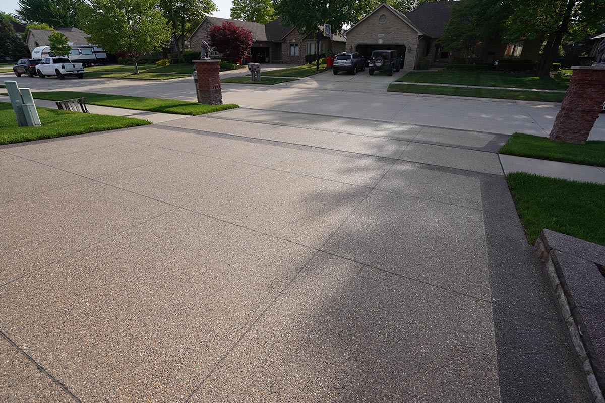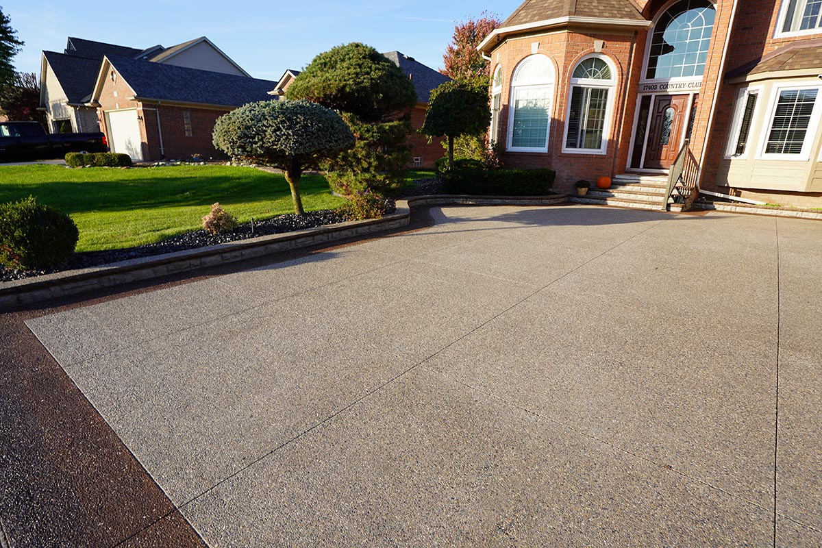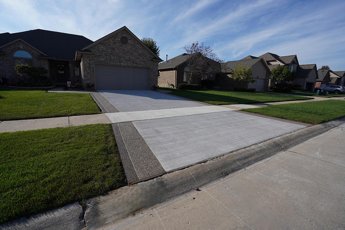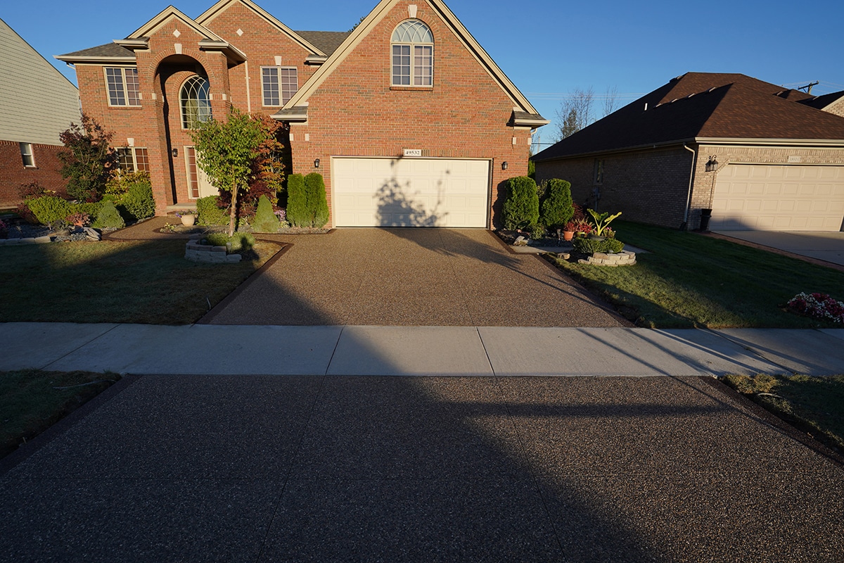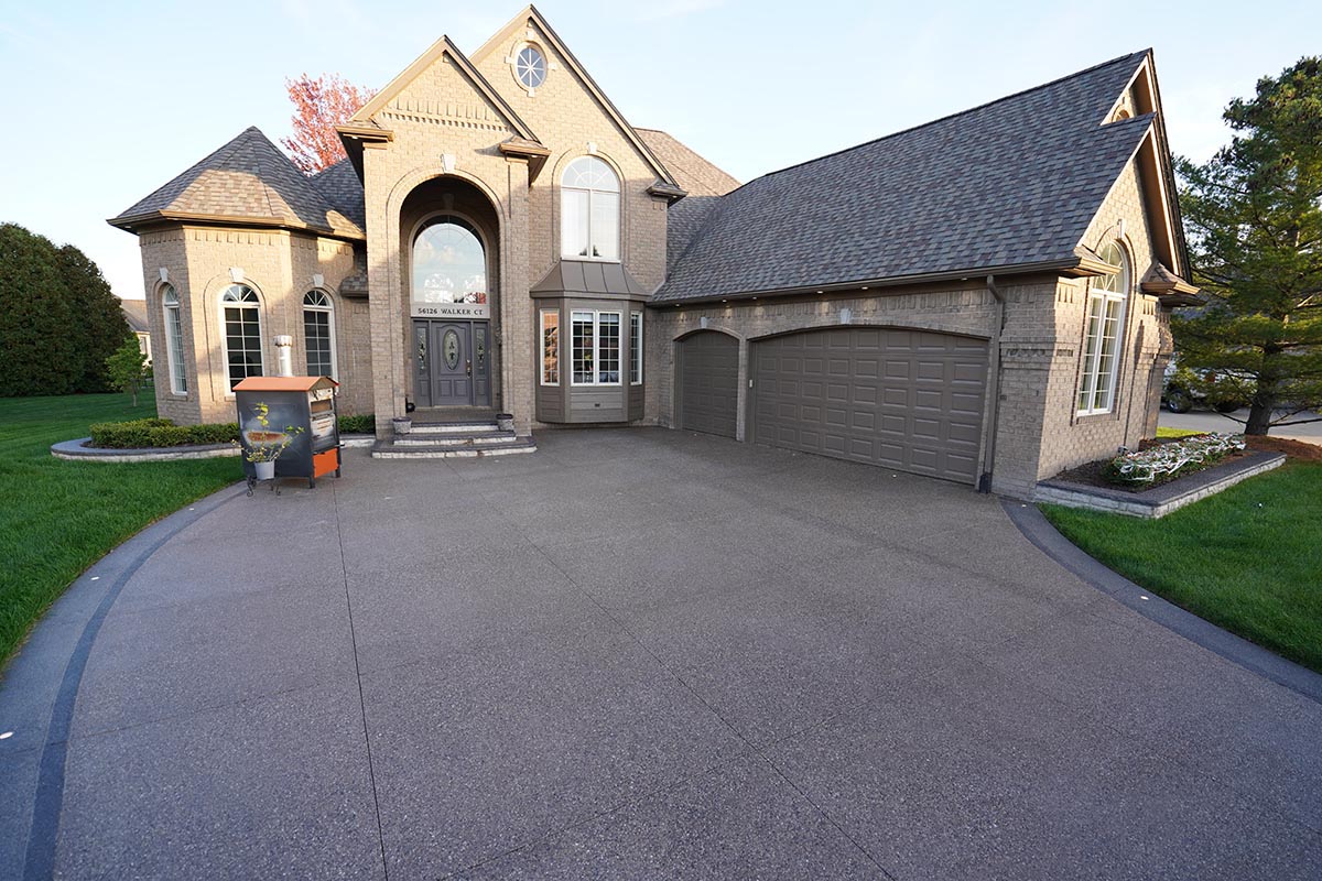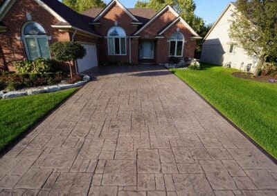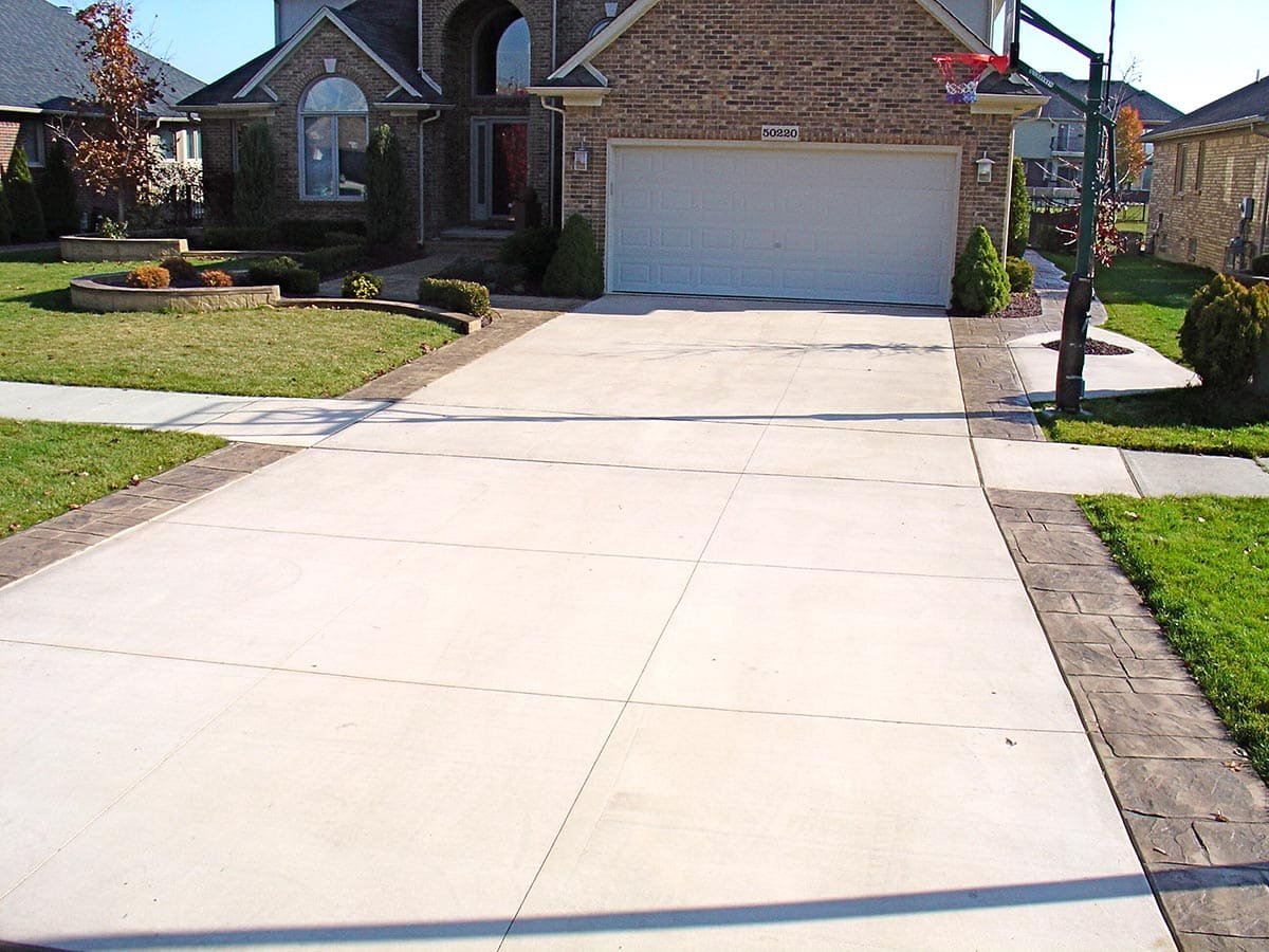 Browse our concrete driveway photo gallery to see stunning examples of stamped concrete driveways, exposed aggregate driveways, and traditional concrete installations throughout Macomb County. Our driveway gallery showcases the variety of finishes, patterns, and styles available for your home. Each driveway is built with high-strength concrete reinforced with steel rods throughout, ensuring durability that withstands Michigan’s harsh winters. From decorative stamped designs to sleek exposed aggregate finishes, these completed projects demonstrate our expertise in concrete driveway installation. Ready to transform your driveway? Contact us for a free estimate.