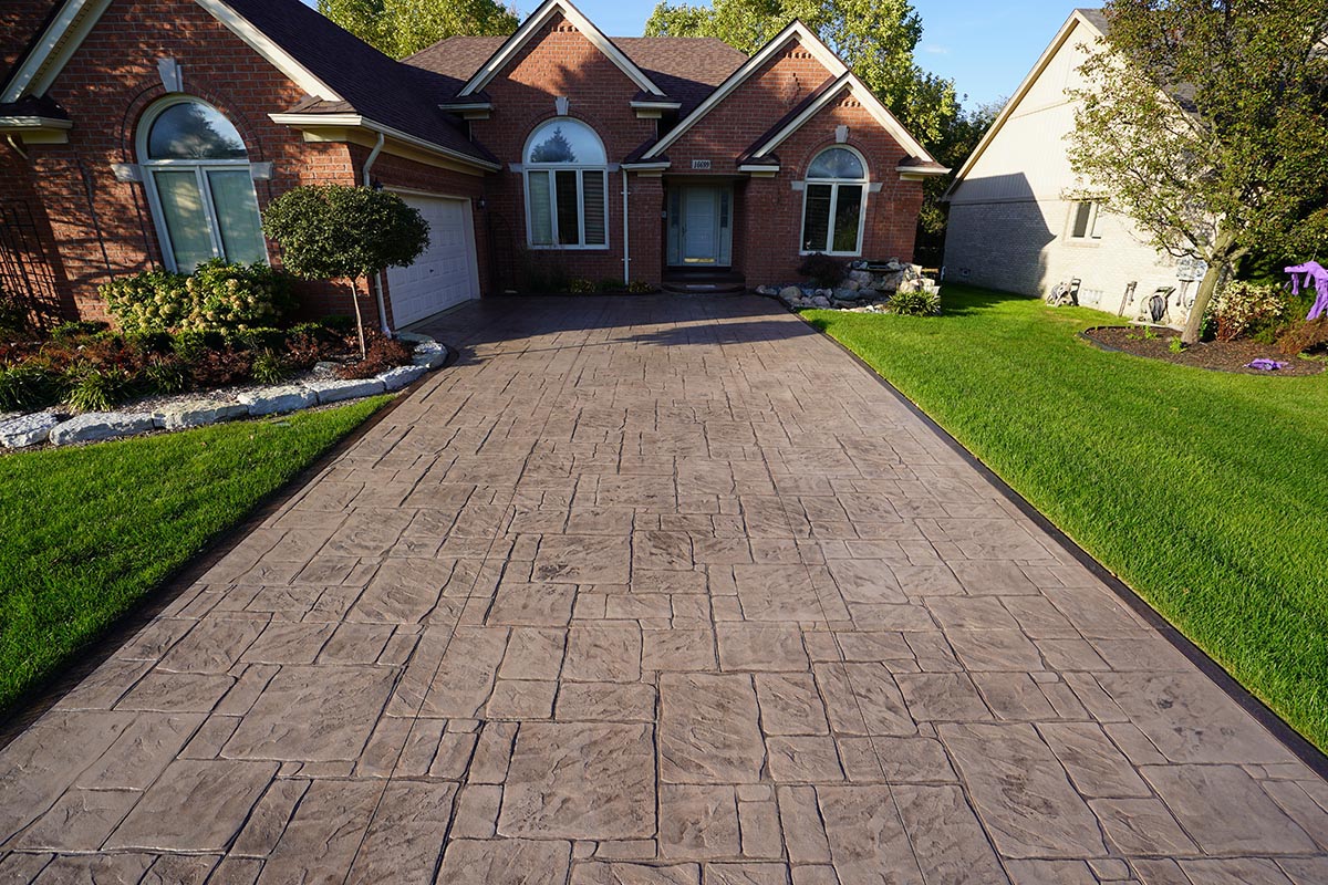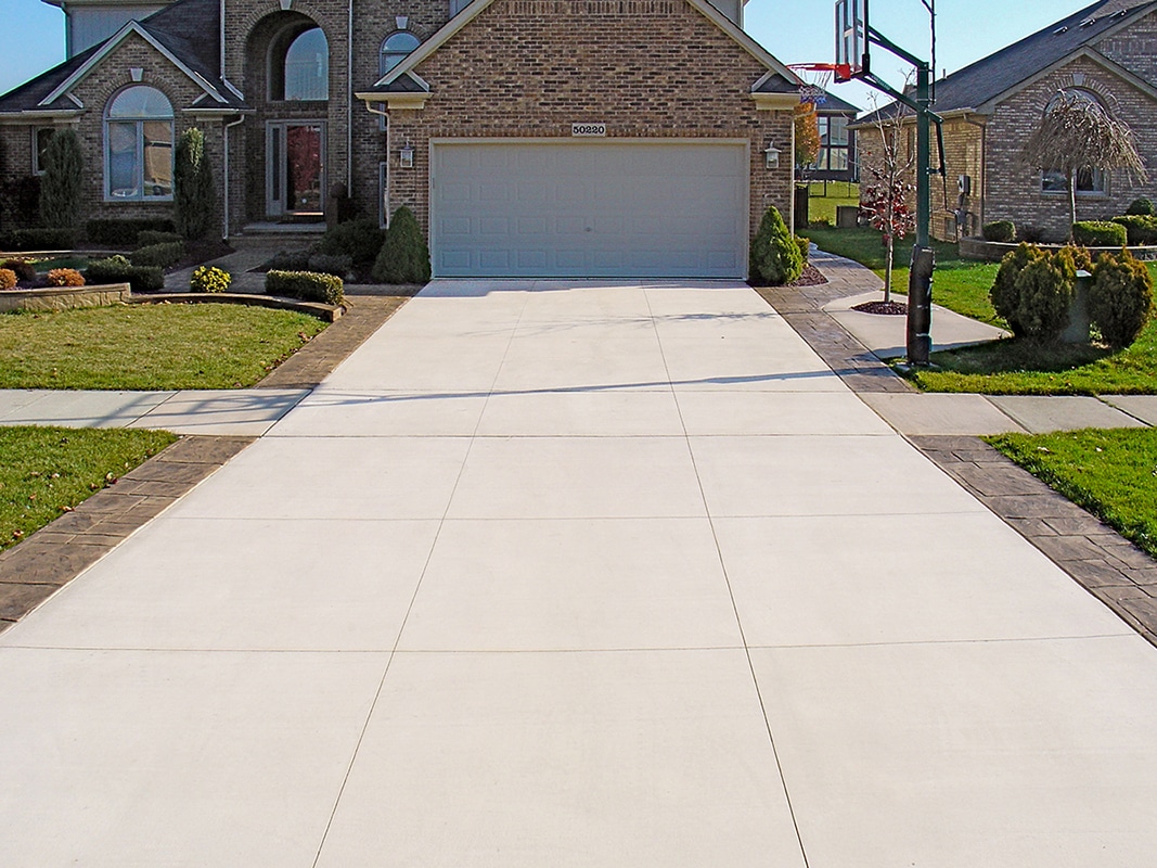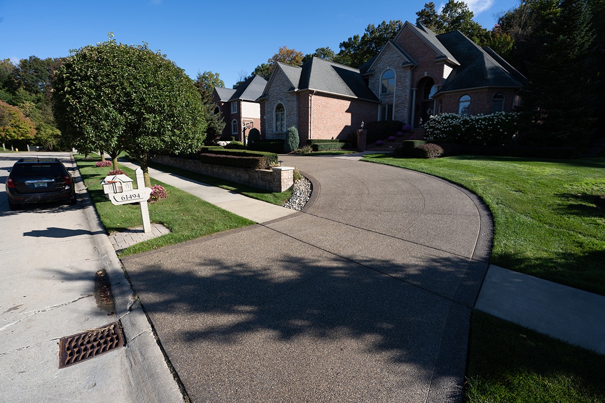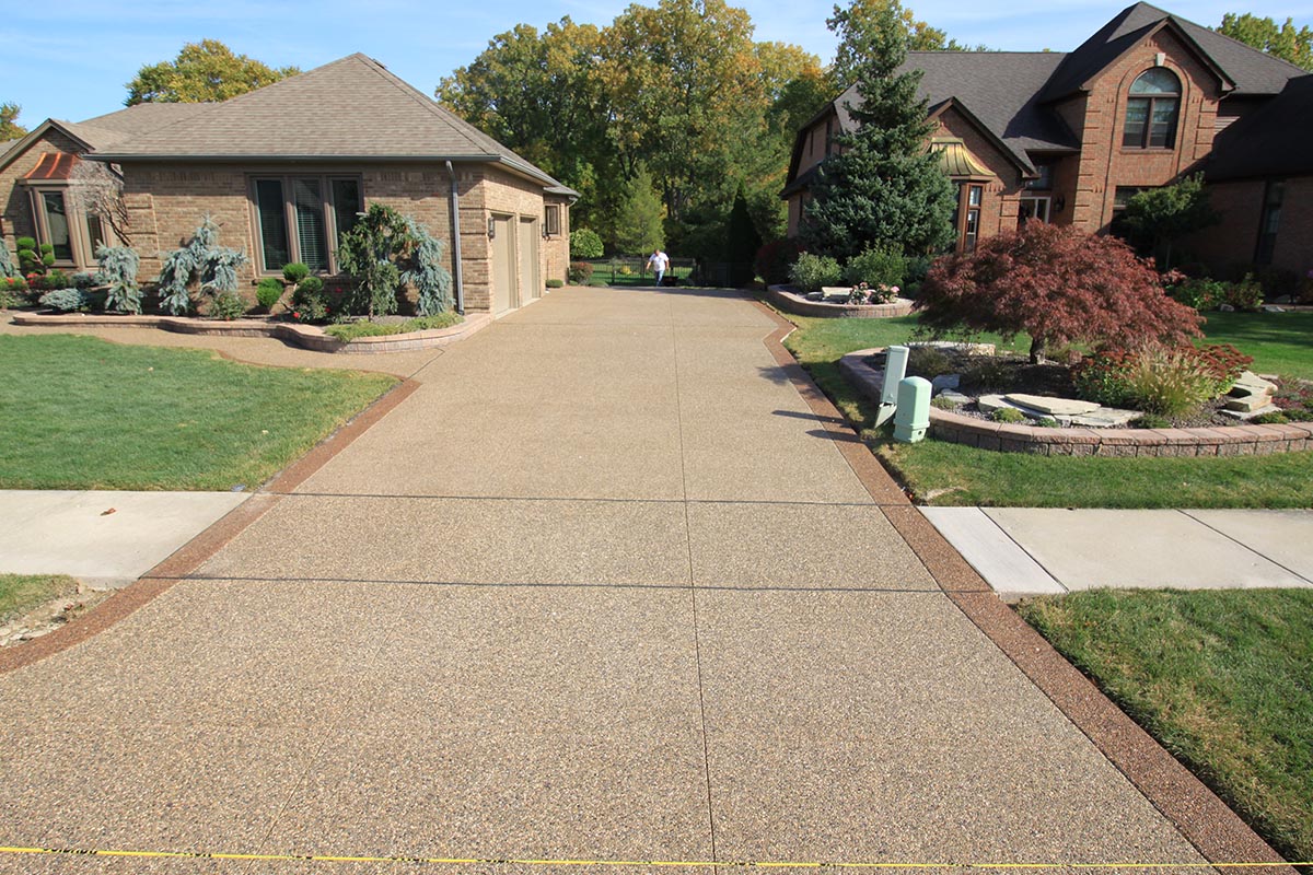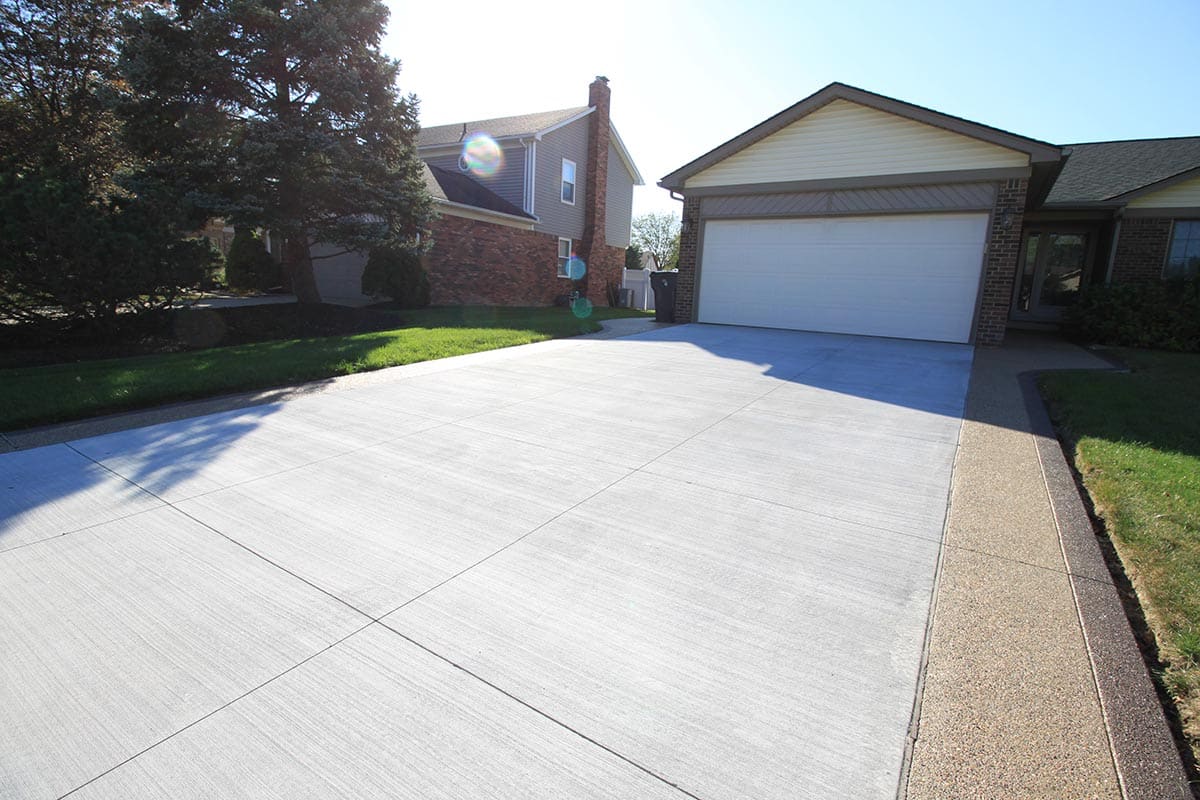 Browse our concrete driveway photo gallery to see stunning examples of stamped concrete driveways, exposed aggregate driveways, and traditional concrete installations throughout Macomb County. Our driveway gallery showcases the variety of finishes, patterns, and styles available for your home. Each driveway is built with high-strength concrete reinforced with steel rods throughout, ensuring durability that withstands Michigan’s harsh winters. From decorative stamped designs to sleek exposed aggregate finishes, these completed projects demonstrate our expertise in concrete driveway installation. Ready to transform your driveway? Contact us for a free estimate.