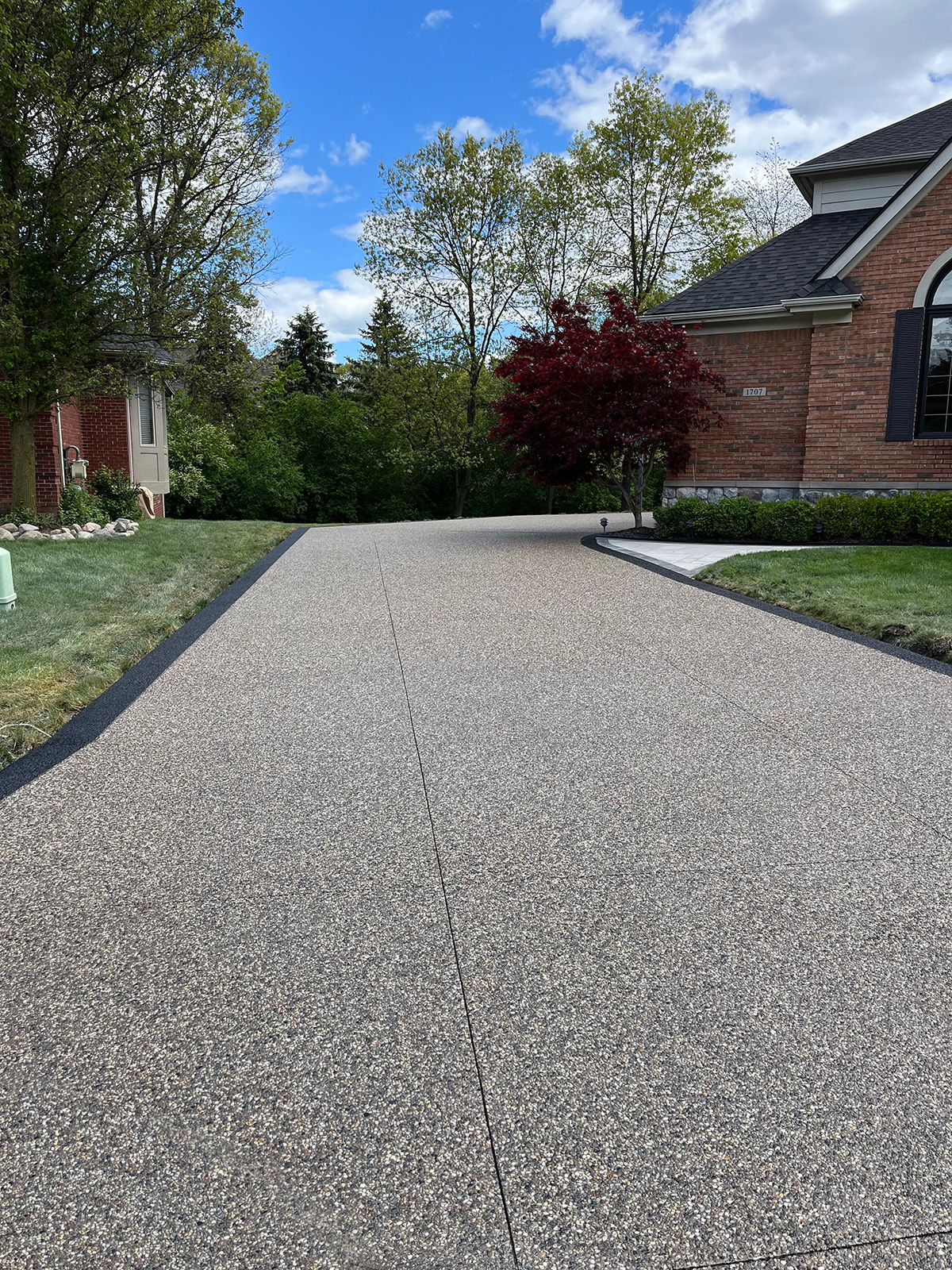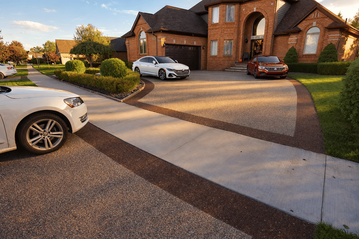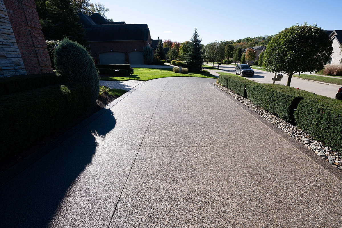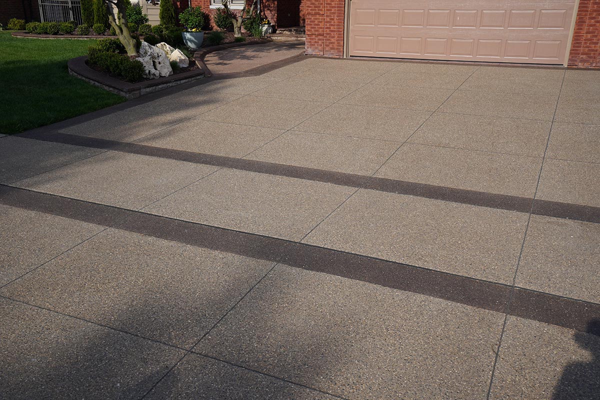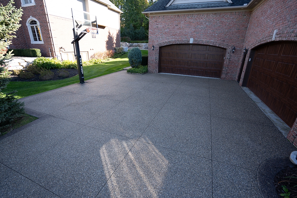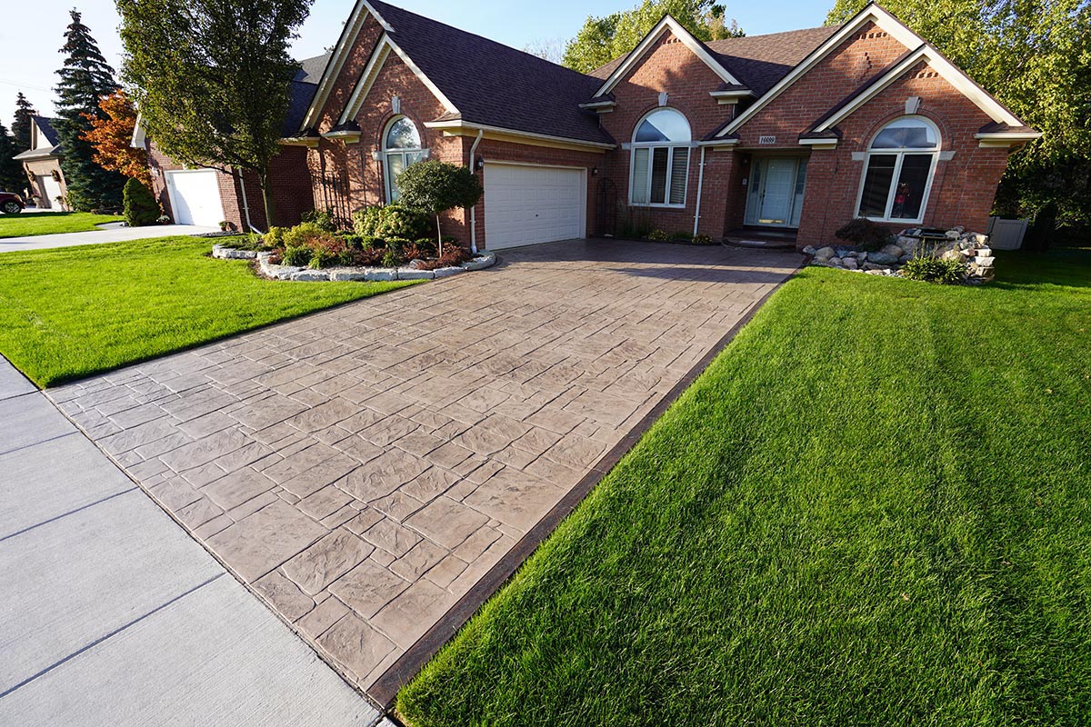 Browse our concrete driveway photo gallery to see stunning examples of stamped concrete driveways, exposed aggregate driveways, and traditional concrete installations throughout Macomb County. Our driveway gallery showcases the variety of finishes, patterns, and styles available for your home. Each driveway is built with high-strength concrete reinforced with steel rods throughout, ensuring durability that withstands Michigan’s harsh winters. From decorative stamped designs to sleek exposed aggregate finishes, these completed projects demonstrate our expertise in concrete driveway installation. Ready to transform your driveway? Contact us for a free estimate.