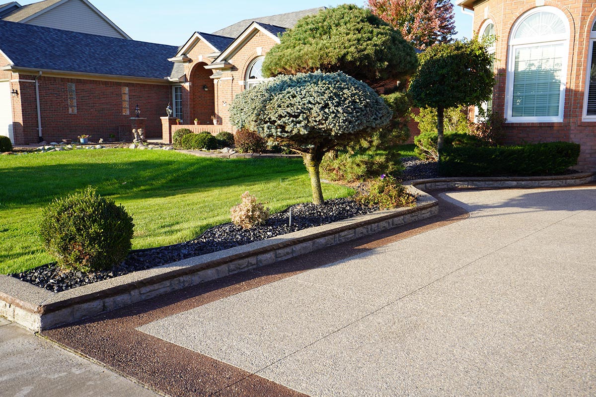 View our durable, professionally installed concrete driveways featuring stamped, exposed aggregate, and traditional finishes.